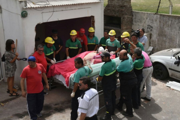 Argentinski vatrogasci bili su primorani da sruše zid kuće jedne Argentinke kako bi ta 490 kilograma teška žena bila iznijeta i prebačena u bolnicu na liječenje, prenose lokalni mediji.