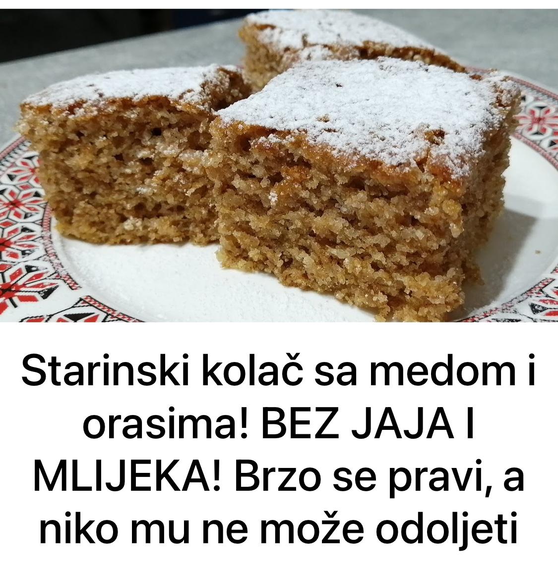 Starinski kolač sa medom i orasima! BEZ JAJA I MLIJEKA! Brzo se pravi, a niko mu ne može odoljeti
