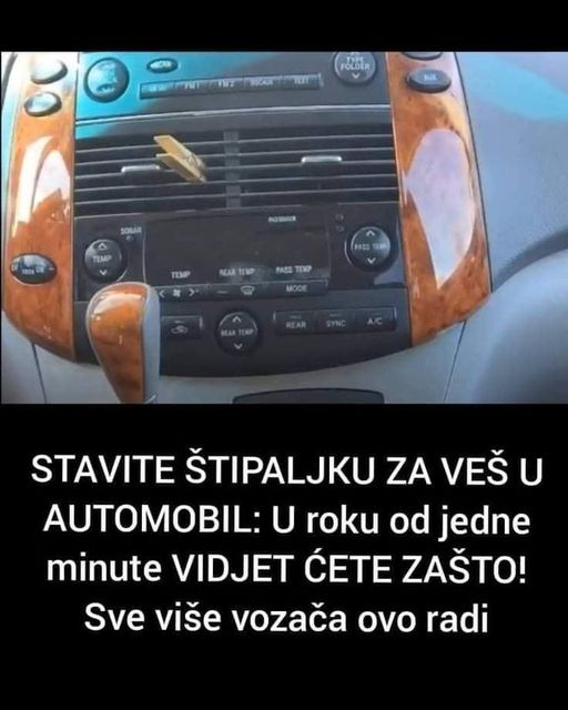 Sve što vam treba je drvena štipaljka za veš i eterično ulje po želji. Štipaljku natopite sa nekoliko kapi ulja pa je pričvrstite na otvor za ventilaciju, gdje se i inače stavljaju kupovni tekući mirisi za automobil.