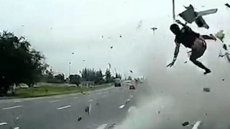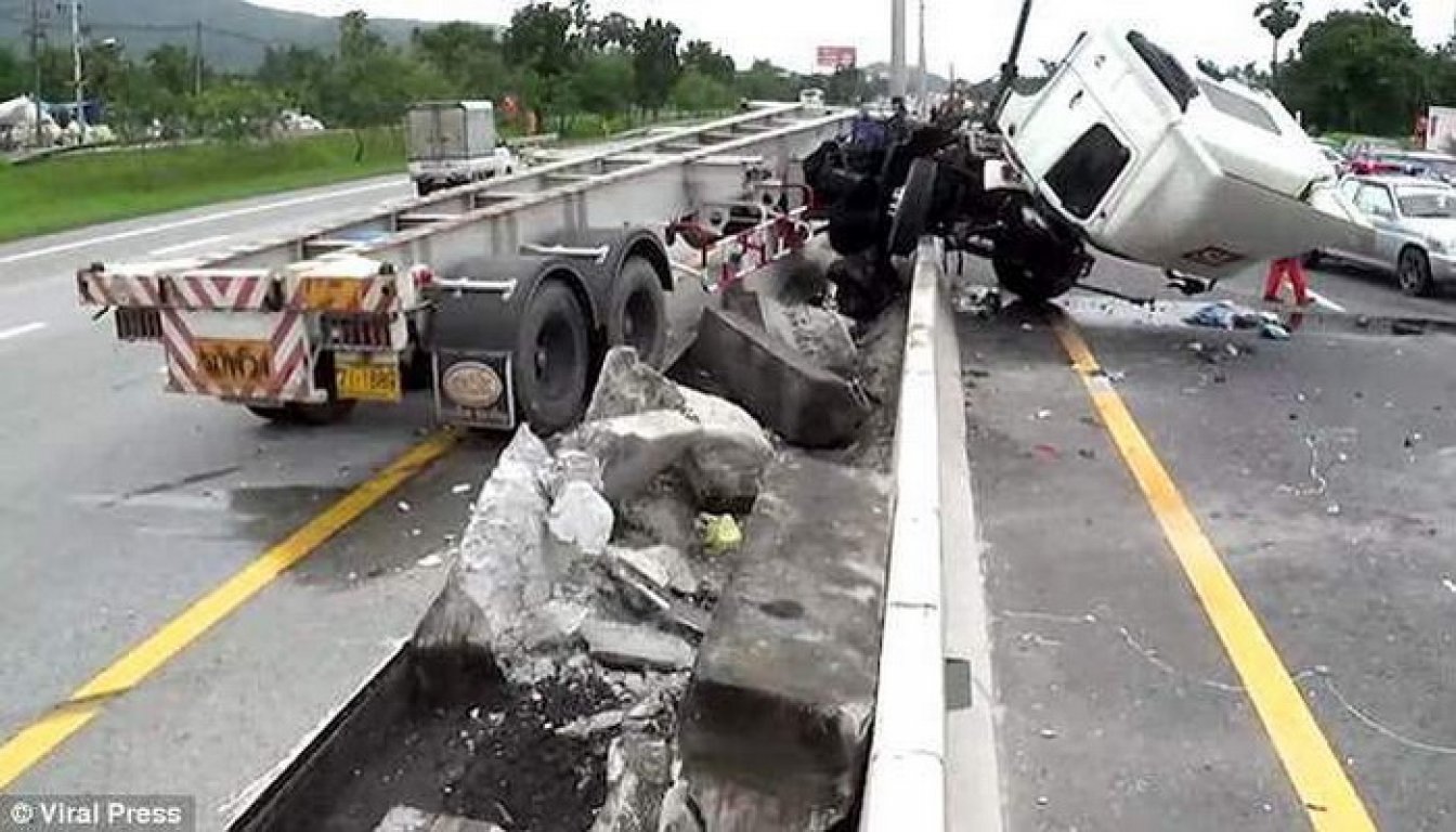 Snimak strašne nesreće dolazi sa Tajlanda, a prikazuje trenutak kada je vozač Yuttapong Hawilee (39) izgubio kontrolu nad vozilom pri punoj brzini i udario u zaštitnu ogradu. Vozač je pri tome katapultiran iz kabine i pao je desetak metara od kamiona.