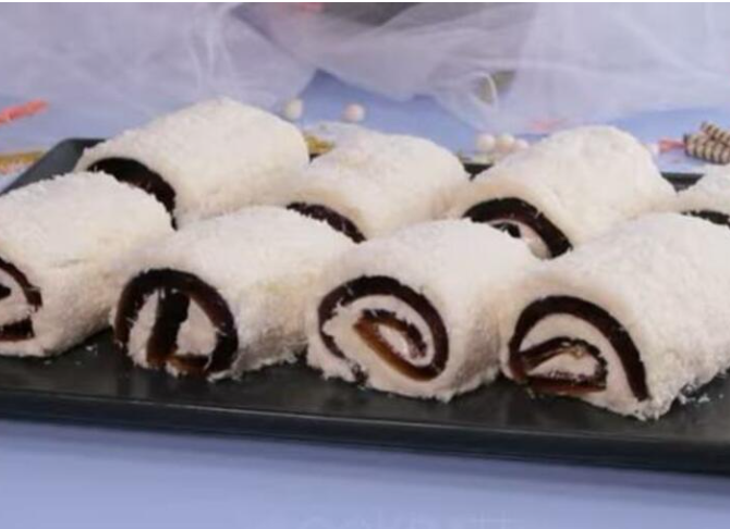 Ohladite u frižideru sat vremena. U želatin sipajte vodu i ostavite da nabubri, a onda otopite na pari i sipajte ga u koka kolu. Promešajte i sipajte preko belog krema. Opet ohladite u frižideru sat vremena. Isecite trake i svaku urolajte.