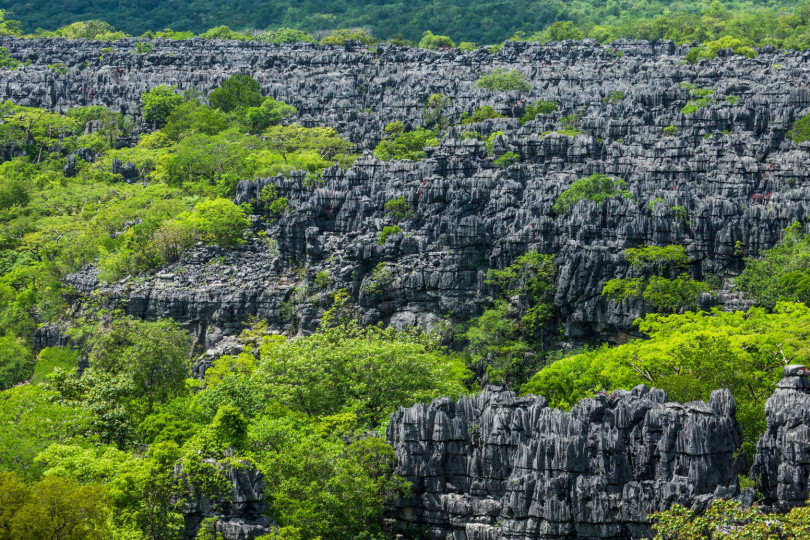 Kamena šuma Tsingy je zbog šiljastih kuteva vapnenačkih stijena koje su oblikovale specifične meteorološke prilike i voda, prozvana šumom noževa.