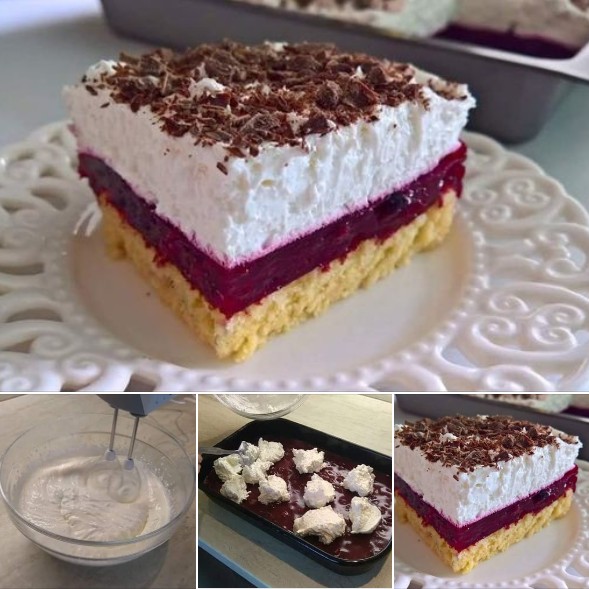 Pleh dimenzija 24×22 cm obložite pek papirom i izlijte smesu. Pecite na 180°C nekih 12-15 minuta. Proverite čačkalicom.