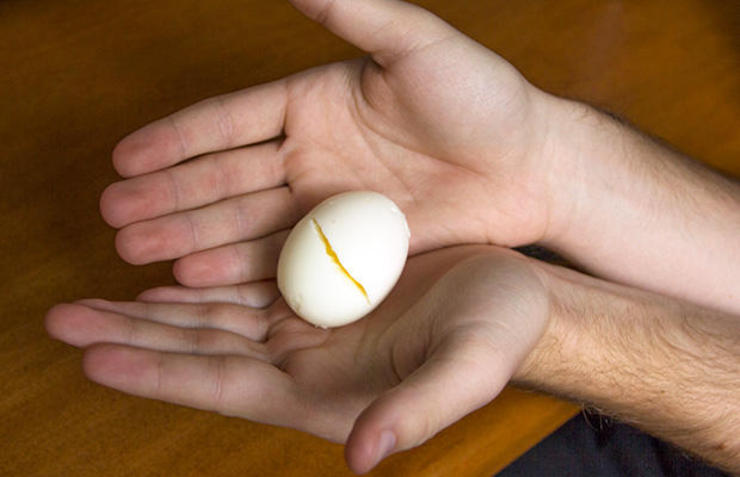 Skuhajte jaje u popodnevnim satima, i ogulite ga. Probodite jaje nekoliko puta pomoću vilice ili čačkalicu. Ulijte ocat u zasebnu zdjelu i potopiti jaje u ocat. Ostavite namočeno preko noći.