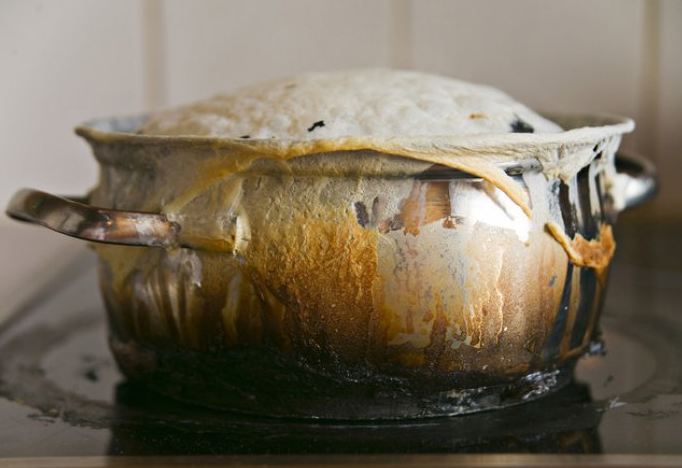 Pustite da ključa i uskoro ćete moći da potpuno uklonite sve zagorjele ostatke sa malo ribanja žicom.
