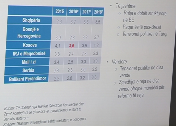Redovni ekonomista u kancelariji Svjetske banke na Kosovu, rekao je da vidi kontinuiran i stabilan rast na Kosovu od 3,6 odsto, što je neznatno manje nego u 2015. godini.