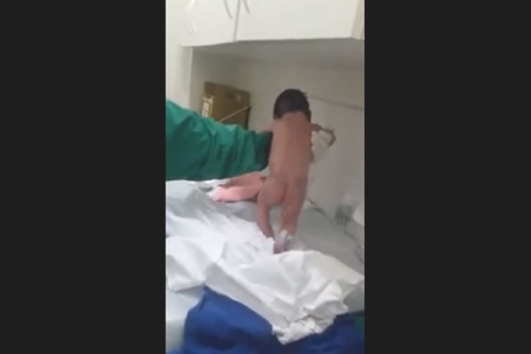 Neposredno nakon rođenja, beba koju su pokušali da okupaju pokazala je jaku volju da im to ne dozvoli. Malena djevojčica, koju je babica držala jednom rukom, krenula je da opruža noge i korača napred pokušavajući da se izmigolji.