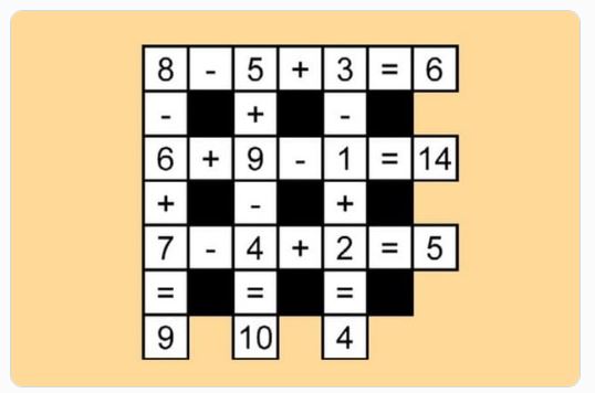 Na ilustraciji ispred vas su brojevi, matematički simboli i rešenja, ali i 9 praznih polja. U svakom polju treba da stoji broj od 1 do 9, bez ponavljanja, kako biste na kraju dobili tačan rezultat koji je unet.