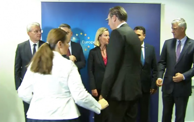 U Briselu je održana radna večera sazvana od visoke predstavnice EU Federike Mogerini sa liderima Zapadnog Balkana. To je u stvari oproštajni susret Mogerinijeve na kome su učestvovali i predsednici Kosova i Srbije Hašim Tači i Aleksandar Vučić, prenosi lajmi.net.