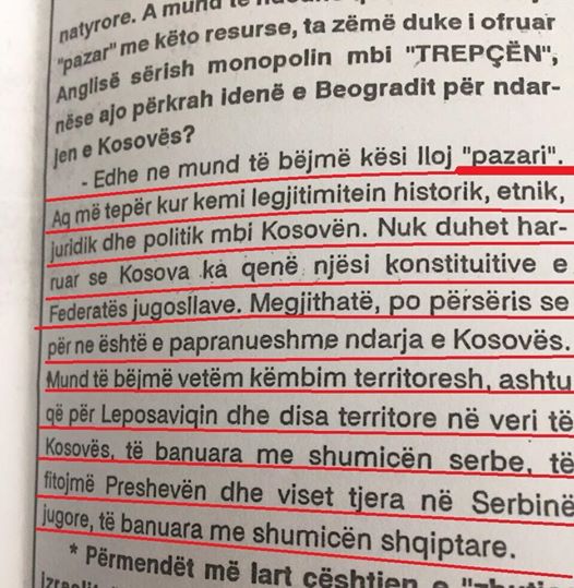On je na svom Fejsbuk profilu ocjenio da je bila realistična i hrabra pozicija nekadašnjeg predsjednika Ibrahima Rugove 1994, koji je govorio: „Ne podjeli Kosova, ali da za razmjenu teritorija“.