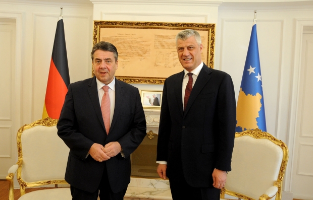 Predsjednik Kosova, Hashim Thaçi, danas je na sastanku dočekao ministra spoljnih poslova Njemačke, Zigmara Gabriela. Ovom prilikom Thaçi se ministru Gabrielu zahvalio na podršci koju su njemački narod i država pružali Kosovu i kosovskom narodu.