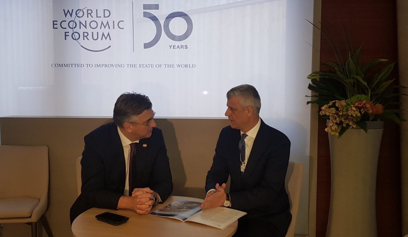 “U okviru Svetskog eknomskog foruma u Davosu sreo sam premijera Hrvatske Andreja Plenkovića. Razgovarali smo o odličnim bilateralnim odnosima i strateškom partnerstvu između Kosova i Hrvatske. Kosovo očekuje da će tokom hrvatskog presedavanja Evropskom unijom biti doneta odluka o liberalizaciji viza za naše građane”, napisao je Tači na Fesjbuku.
