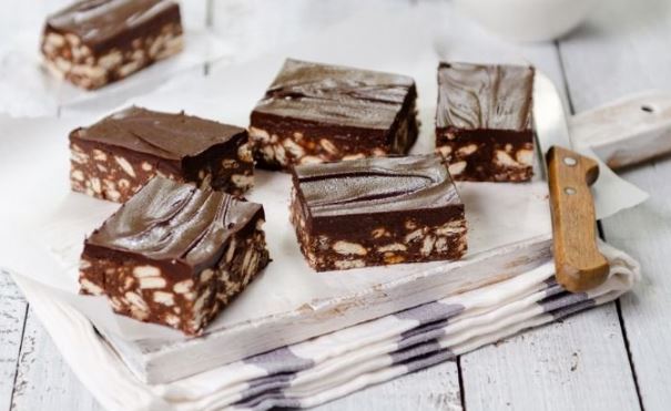 Ostavite da se torta stegne, pa je prelijte glazurom. U šerpici izlomite 100 grama čokolade za kuvanje, prelijte je uljem, pa rastapajte na tihoj vatri dok se sastojci ne sjedine. Ostavite još sat vremena da se glazura stegne, pa secite tortu na kocke i služite.