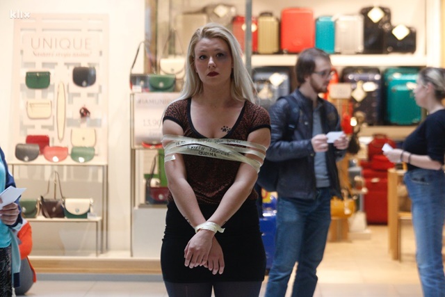 Naravno, riječ je o volonterima Crvenog križa Novo Sarajevo koji su svojim tijelima učestvovali u posebnom performansu inscenirajući najgore aspekte trgovine ljudima.