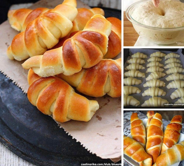 Najprije stavite kvasac u srednje toplo mleko, sa malo secera i brasna da nadoge. Onda dodajte sve tecne sastojke, jaje i brasno. Testo treba da bude meko. Ostavite da se odmori 15 minuta. Onda tjesto podelite na 6 delova. Pravite forme koje zelite, ja sa 3 delova radila sam puzice, a od 3 delova motala sam kiflice. Regati i u pleh, premazite izmucenom jajetom, narosite susamom i za 15 minuta ih pecite.