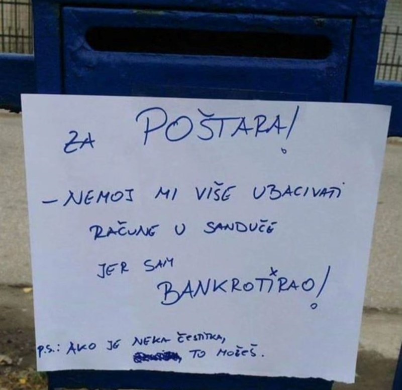 Tip je na sandučiću ostavio urnebesnu obavijest za poštara i nasmijao cijeli Balkan, SLIKA JE HIT
