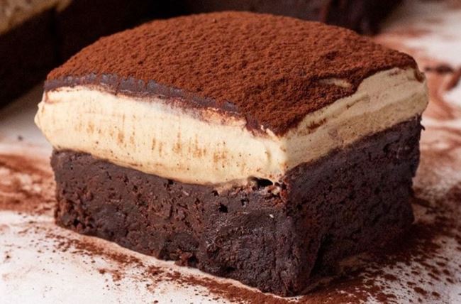 Tiramisu brownie slastica je koja spaja čokoladne biskvitne kolače i kremu koja krasi tiramisu, a rezultat je čista fantazija
