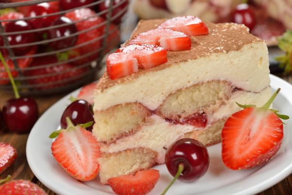 Očišćene jagode narežite na tanke šnite, a nakon toga istucite slatko vrhnje pa miskerom izradite i mascarpone u koji treba postupno dodavati šećer. Potom ručno u mascarpone umiješajte šlag. Pripremite pravokutnu zdjelu u koju ćete slagati sastojke.