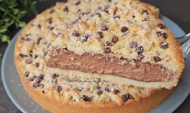 Kada je kora ispečena izvaditi i ohladiti. Zatim ravnomjerno rasporedite fil preko kore i ostavite da se stegne. Ukrasite rendanom čokoladom i seckanim orasima, a zatim tortu narežite na kockice željene veličine i poslužite.