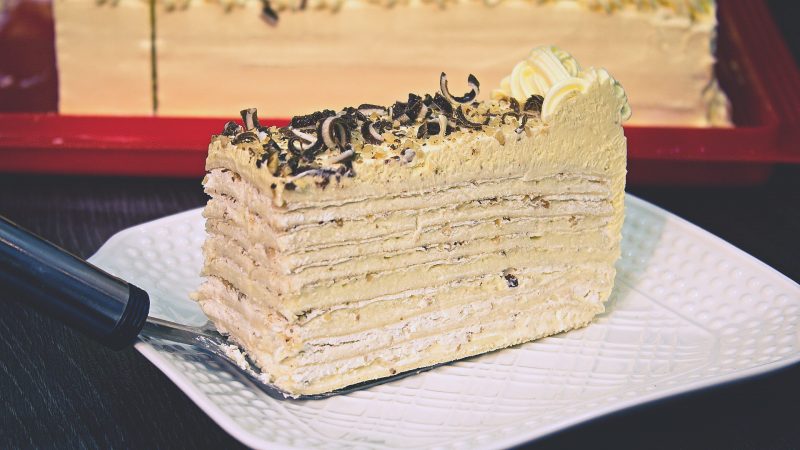 Sastojci:1 l mleka,,120 gr pudinga sa ukusom vanile ( 3 žumanca, 6 kašika gustina i malo ekstrakta od vanile ),8 kašika kristal šećera,250 gr margarina ili maslaca,100 gr šećera u prahu,100 gr bele čokolade,200 gr mleka u prahu,500 ml slatke pavlake ( 300 gr šlaga i 300 – 500 ml vode ),180 gr kisele pavlake,200 – 300 gr pečenih, mlevenih lešnika,1 pakovanje slatkih rozen kora.
