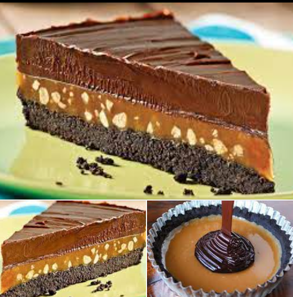 U međuvremenu, stavite čokoladu u činiju. U šerpi zagrejte slatku pavlaku do ključanja, sklonite sa ringle pre nego što provri, sipajte preko čokolade i mešajte dok se ne rastopi. Potom dodajte puter i mutite dok ne dobijete glatku smesu. Kad se ohladi sipajte preko karamel krema, ravonomerno razmažite i ostavite da se stegne u frižideru 2 sata.