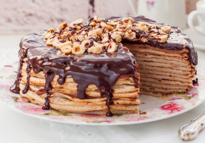 2. Svaku palačinku premažite filom. Ostavite malo fila za kasnije. Svaku palačinku presavijte dvaput. Potom po svakoj palačinki premažite preostali fil.