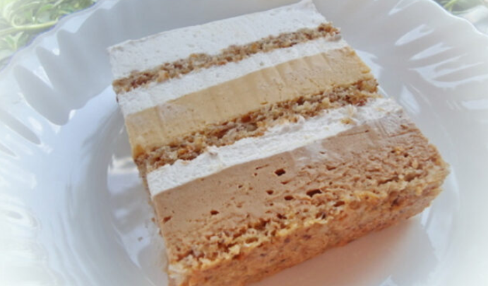 Sastojci:Fil:1,5 l Mleka,2,5 dl slatke pavlake,5 kesica pudinga od karamele,6 žumanaca,300 g šećera,250 g margarina,250 g bele linolade,250 g crne linolade.Kora:3 belanca,5 kašika šećera,3 ravne kašike brašna,1/2 praška za pecivo,80 g lešnika