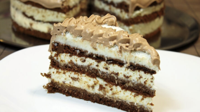 Kora:6 jaja,10 kašika šećera,5 punih kašika brašna,dvije kašike kakaoa,jedna kesica praška za pecivo,3 kašike mlijeka,3 kašike ulja.Fil:1 l mlijeka,jedna kesica pudinga sa ukusom slatke pavlake,5 kašika gustina,6 kašika šećera,100 grama kokosa,300 ml slatke pavlake.Čokoladna krema:250 ml slatke pavlake,150 grrama čokolade.