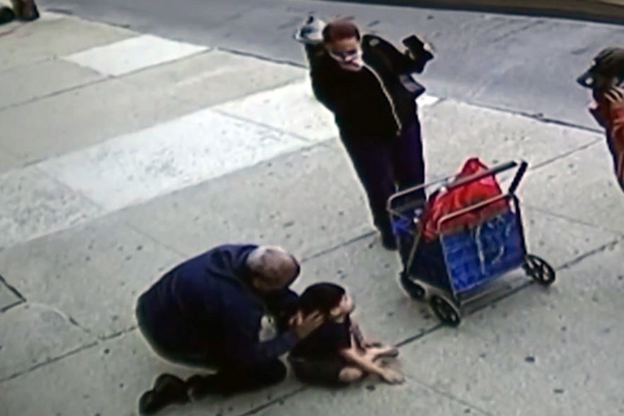 Video prvo prikazuje pomicanje tende na koju je pao trogodišnjak. Nakon što je sletio na tlo, na snimci se vidi da dječak pokušava ustati. Pronašla ga je žena koja je prolazila ulicom, a ubrzo se oko dječaka okupila skupina ljudi koja mu je pokušavala pomoći.