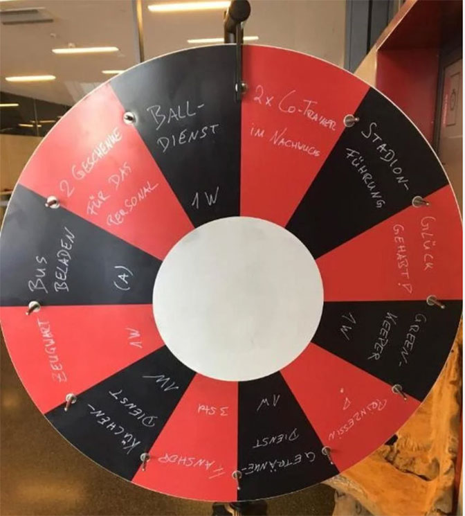 U većini klubova je kažnjavanje u slučaju kršenja pravila uobičajena procedura, a Ragnick je odlučio uvesti male promjene jer novčane kazne nisu bile efikasne. Uvažio je ideju svog pomoćnika Jessea Marscha te kreirao točak sreće na koji je ispisao moguće kazne. Igrači moraju okrenuti točak ukoliko kasne na trening, koriste smartphone ili dobiju na kilaži.