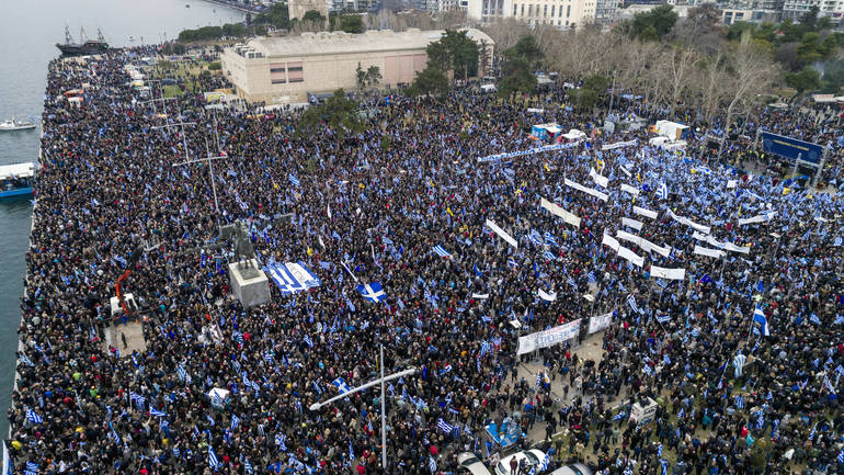 Deseci hiljada Grka izašli su u nedjelju na ulice Soluna, najvećeg grada grčke Makedonije, kako bi protestirali protiv bilo kakvog prijedloga za rješenje te krize.