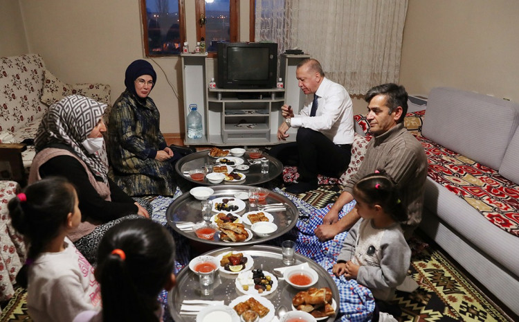 Predsjednik Republike Turske Recep Tayyip Erdogan i njegova supruga Emine drugi iftar (objed) ovogodišnjeg ramazana, odabranog mjeseca muslimana, dočekali su u kući porodice u Ankari, javlja Anadolu Agency (AA).