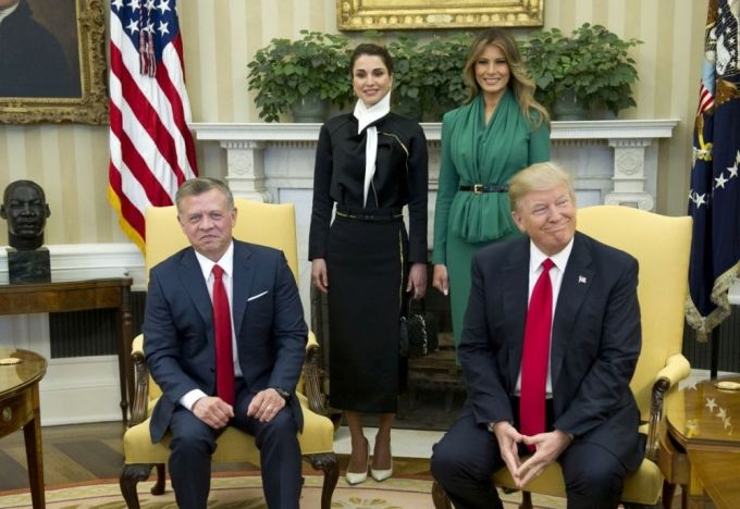 Za susret se pomno pripremila, odabravši zatvorenu smaragdno zelenu haljinu i visoke crne salonke, a dok su kralj i predsjednik razgovarali u Bijeloj kući o situaciji u Siriji i borbi protiv terorizma, dvije dame prošetale su Bijelom kućom i razmijenile nekoliko riječi, piše Index.