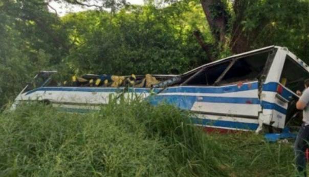 Policijski zvaničnici saopćili su da se putnički autobus survao u provaliju nakon što mu je pukla guma.