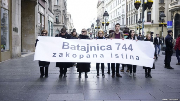 Marko Milosavljević, iz Inicijative mladih za ljudska prava, izjavio je da u Srbiji u poslednjih 20 godina postoji narativ kojim se prećutkuju masovne grobnice u Batajnici, Petrovom Selu, jezeru Perućac i u Rudnici, te da se priznaju samo srpske žrtve.