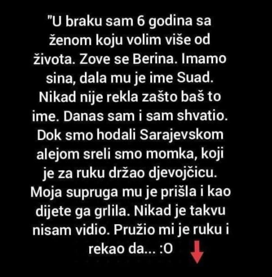 “Ubraku sam 6 godina sa ženom koju volim više od života. Zove se Berina. Imamo sina, dala mu je ime Suad. Nikad nije rekla zašto baš to ime.