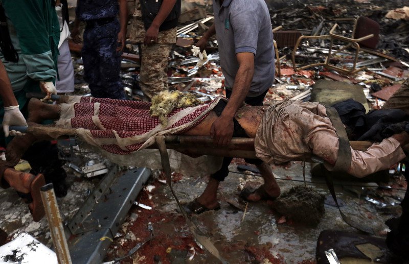 U napadu borbenih aviona iz koalicije predvođene Saudijskom Arabijom na halu u jemenskoj prijestonici Sani poginulo je više od 140, a povrijeđeno više od 525 osoba, ali koalicija negira odgovornost.