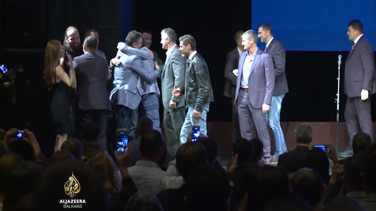 Svečani su bili samo početak i kraj, a za tvrdnju da se nacionalno ili nacionalističko još nije iselilio sa stadiona pobrinuli su se i organizatori i publika. Policijski orkestar, koji će izvesti nacionalne himne, umarširao je pred publiku svirajući srpsku ratnu koračnicu “Marš na Drinu” koji je gledaoce podigao na noge. Bila je to jedna od dvije otpjevane navijačke pjesme, a druga je “Pukni zoro”. Ako izuzmemo poklike “Srbija, Srbija” najglasniji je bio onaj koji većina prihvata zdušno: “Ko ne skače taj je Šiptar”.