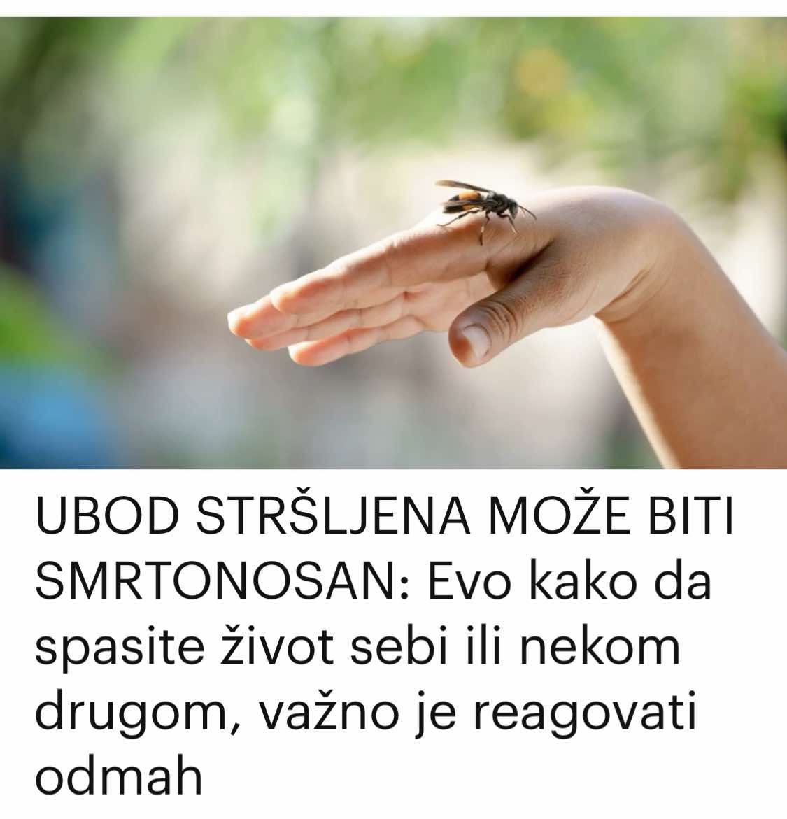 Prošle nedelje je jedan muškarac (45) iz Medveđe umro od ujeda stršljena u vrat. Šta treba uraditi ako vas ubode?