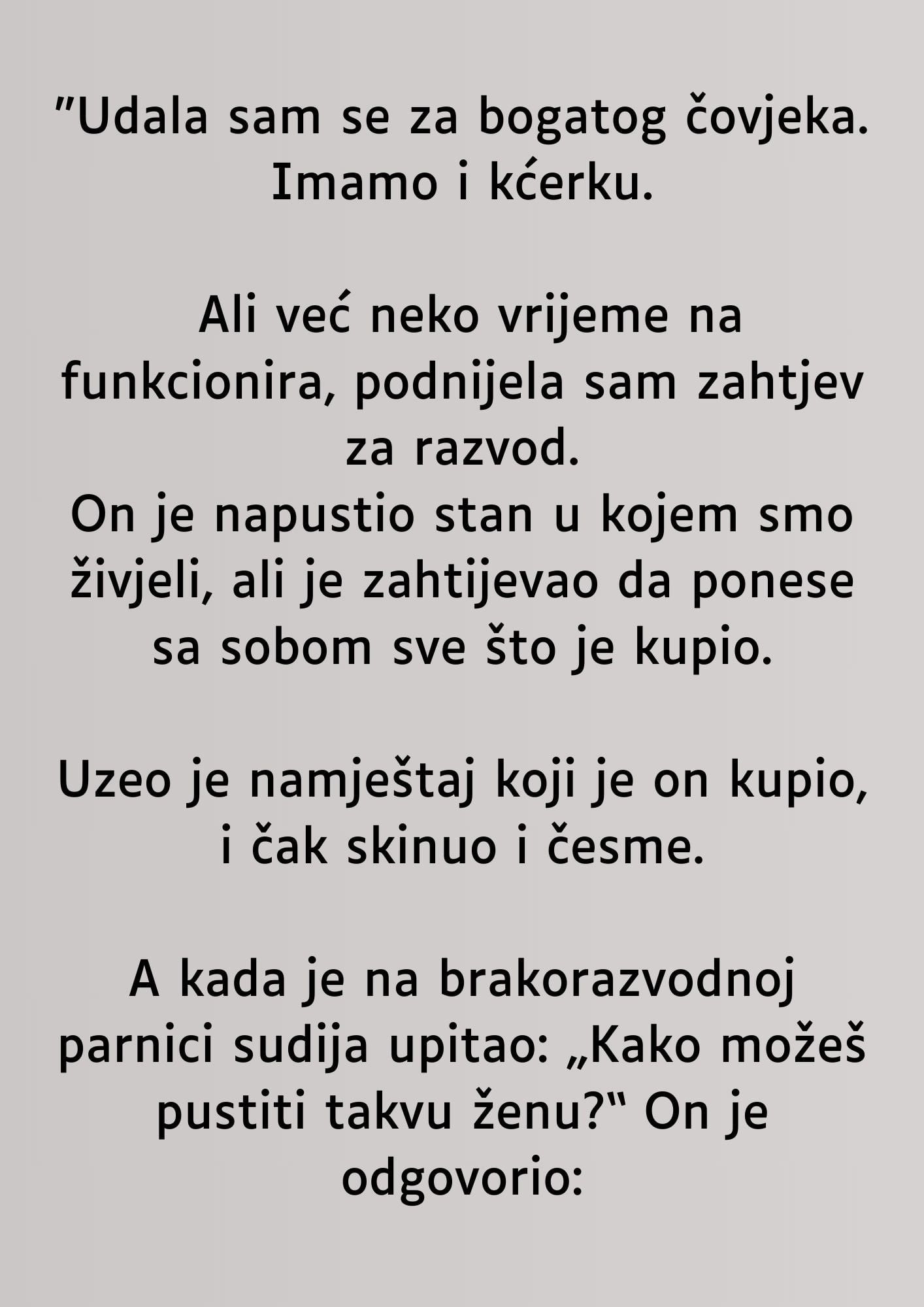 A kada je na brakorazvodnoj parnici sudija upitao: „Kako možeš pustiti takvu ženu?“ On je odgovorio: