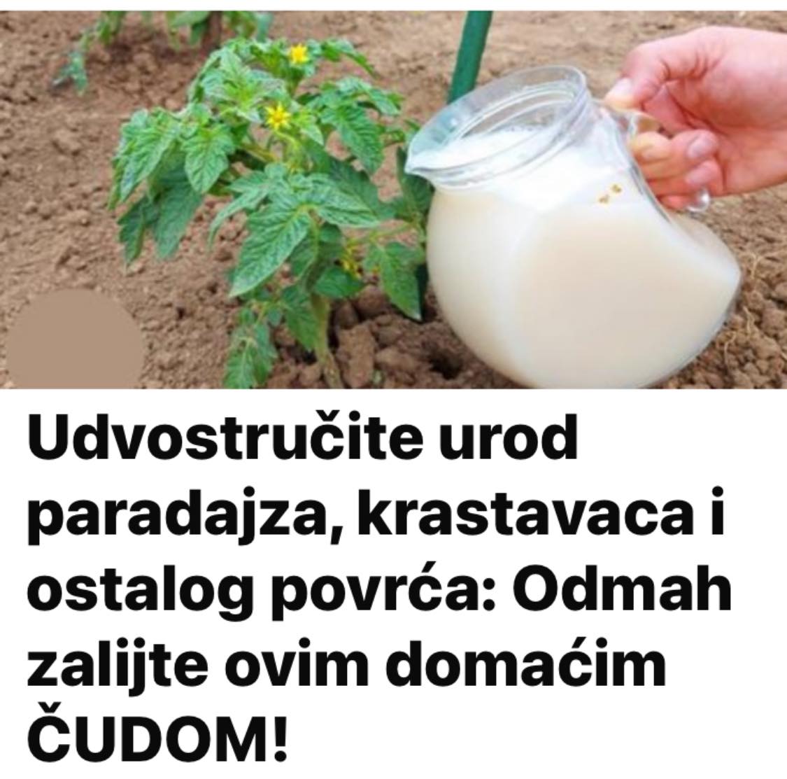 Ako mlijekom polijemo tlo oko biljaka ono će biti puno kvalitetnije jer će apsorbirati vitamine i minerale koje mlijeko sadrži.