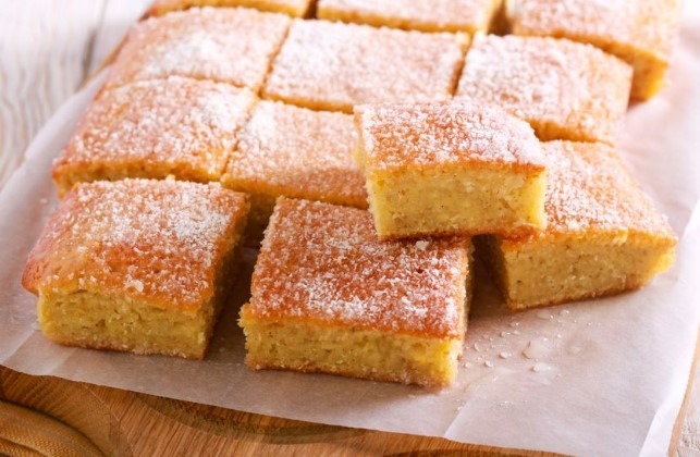 Protvan za pečenje premažite s malo ulja, maslaca ili druge masnoće po želji i pospite oštrim brašnom. Ulijte smjesu u protvan i pecite na temperaturi od 180 Celzijevih stupnjeva između 30 i 40 minuta, ovisno o jačini vaše pećnice. Kolač je gotov kada je na vrhu zlatnožute boje i kada se odvoji od rubova.