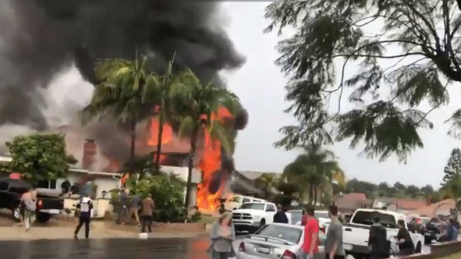 Najmanje pet ljudi je poginulo kad se mali avion srušio u predgrađu južne Kalifornije i zapalio se, a vatra je zahvatila više kuća.