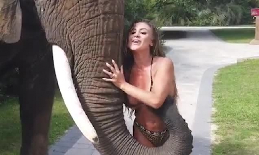 Instagram modela Franciu James je ispipao afrički slon u safari parku u Južnoj Karolini. Slon je svojom surlom nekoliko puta pokušao da skine malešni bikini sa Francinom bujnog poprsja.