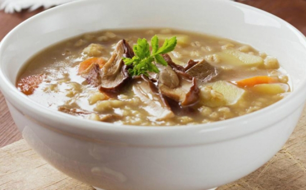 U tavi zagrijte vino. Kad zavrije, maknite s vatre i dodajte oprane sušene vrganje. Ostavite 15 minuta, pa ih procijedite i narežite, ali sačuvajte tekućinu. U loncu zagrijte maslinovo ulje, pa dodajte narezane ljutike i bijeli luk. Nakon pet minuta dodajte narezane smeđe šampinjone, timijan, so i biber. Kuhajte oko pet minuta, pa dodajte tekućinu od vrganja. Kad zavrije, dodajte temeljac, ječam, koncentrat paradajza, vodu i vrganje. Poklopite i kuhajte od 40 do 45 minuta. Maknite s vatre i izvadite oko šoljicuu supe. Izmiksajte je štapnim mikserom dok ne postane glatka te vratite u lonac. Dodajte sok od limuna, so i biber te poslužite.