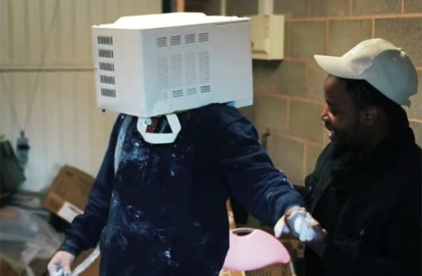 Dvadesetdvogodišnji mladić iz Velike Britanije i grupa njegovih prijatelja sasuli su cement oko njegove glave u mikrovalnoj, koju je štitila plastična kesa.