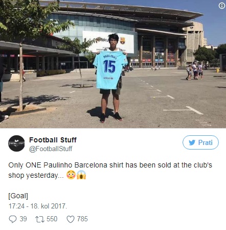 Koliko su navijači Blaugrane nezadovoljni ovim pokušajem pronalaska zamjene Neymara dokazaju i podaci iz zvaničnog fan shopa Barcelone. Naime, od zvaničnog predstavljanja Paulinha na Nou Campu, pa do danas Barcelona nije uspjela prodati nijedan dres ovog igrača domaćim navijačima.