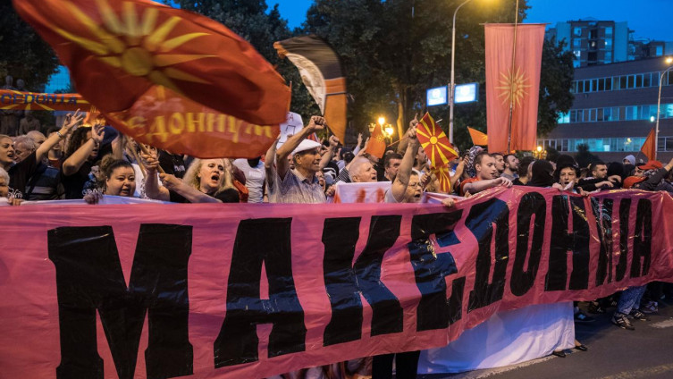 Ispred Sobranja u Skoplju je održan protest udruženja protiv dogovora o promjeni imena u Republika Sjeverna Makedonija, što je saopćio premijer Zoran Zaev.