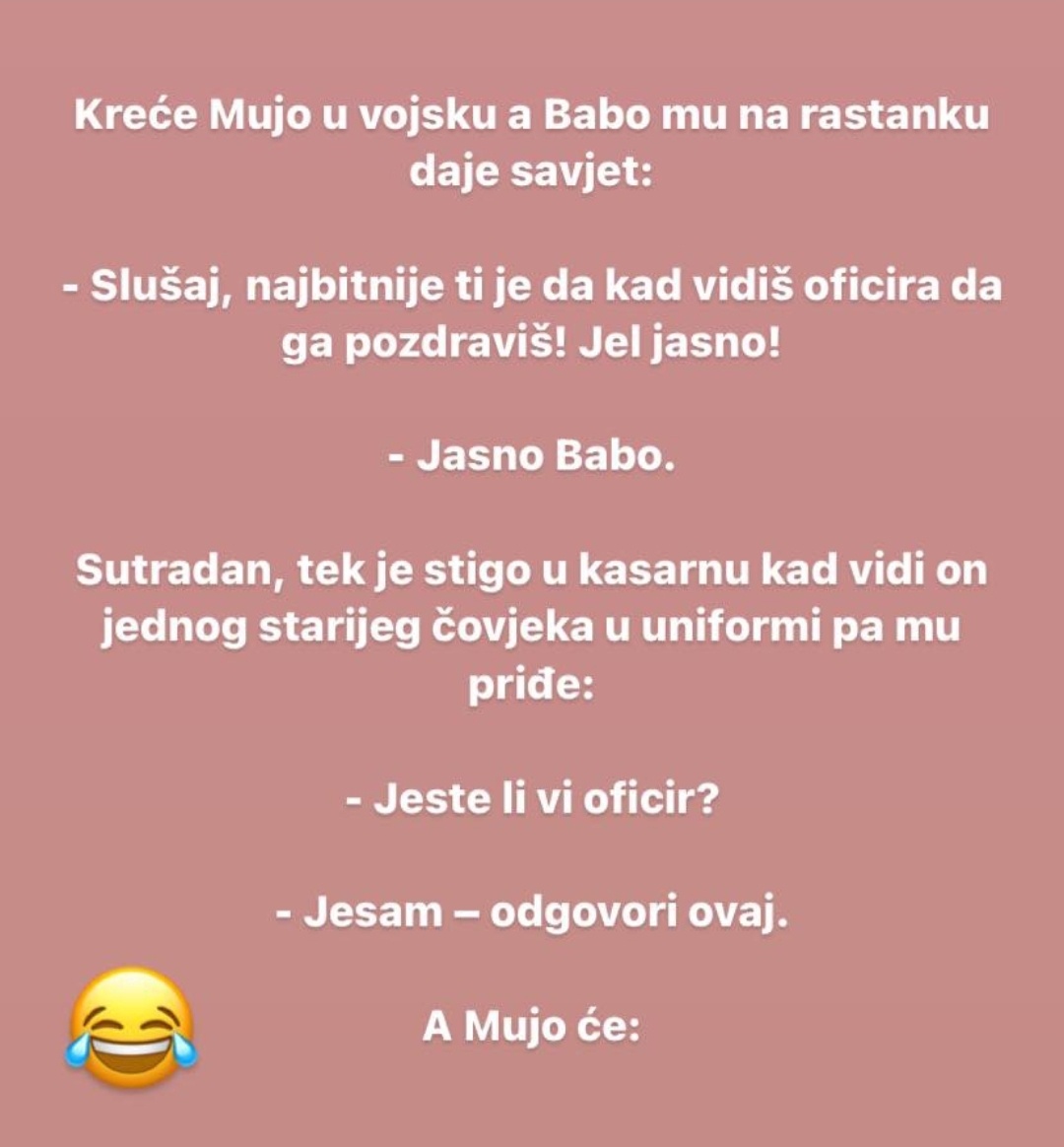 – Slušaj, najbitnije ti je da kad vidiš oficira da ga pozdraviš! Jel jasno!