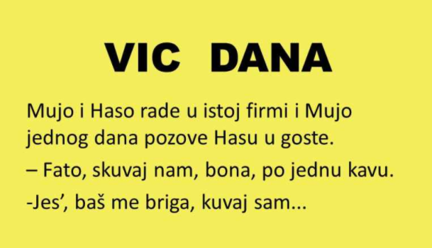 Mujo i Haso rade u istoj firmi i Mujo jednog dana pozove Hasu u goste.